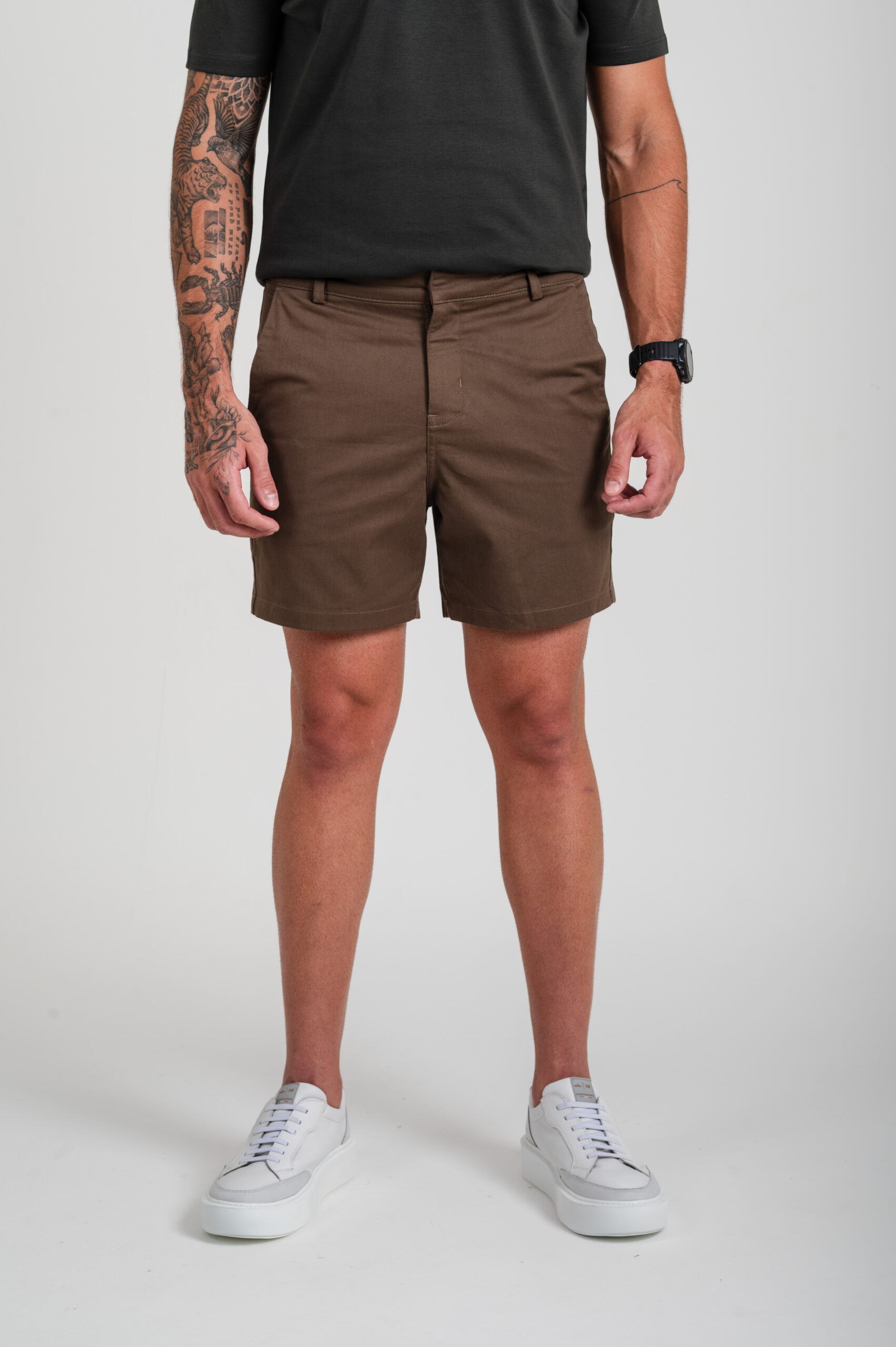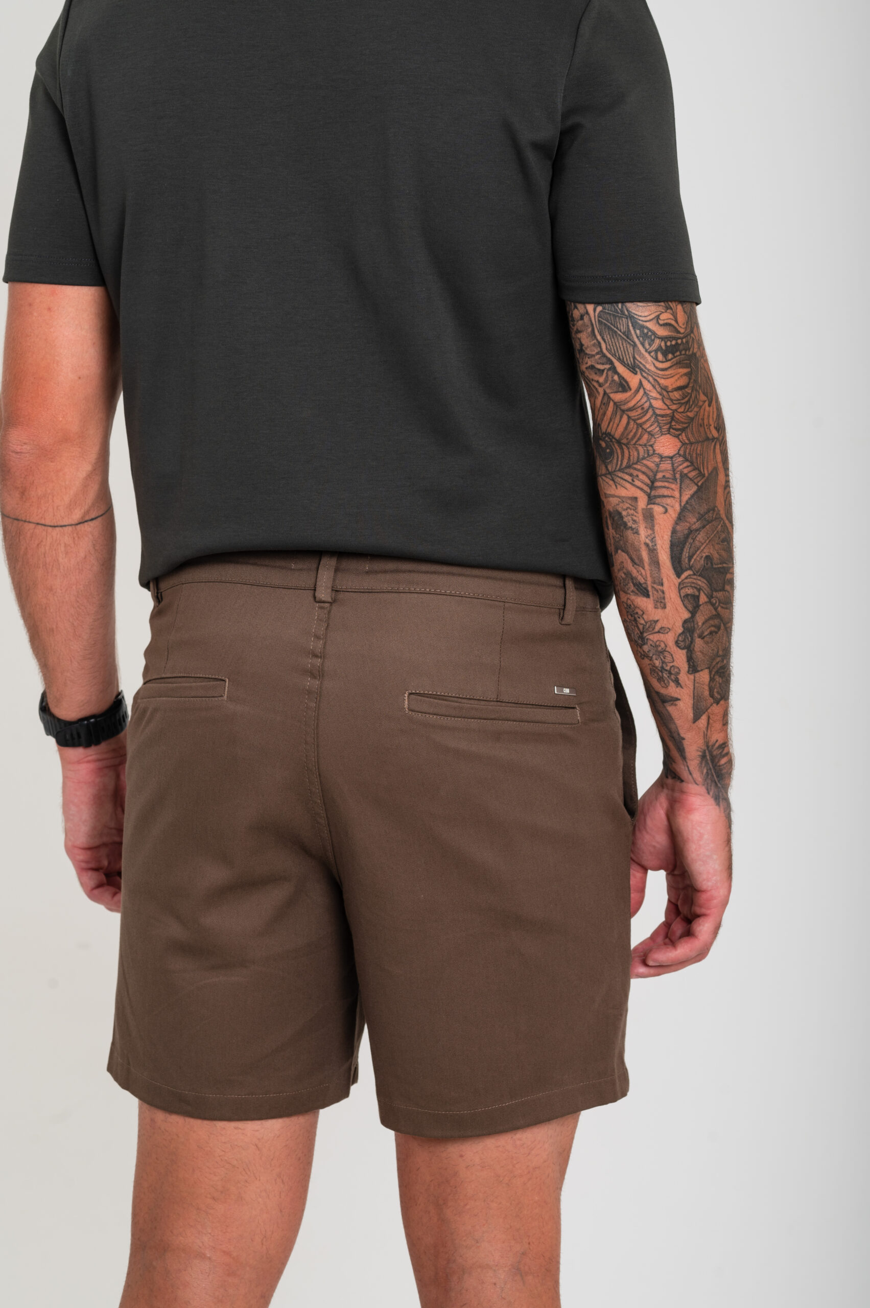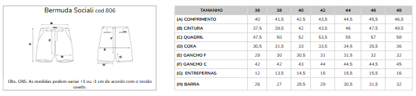 A bermuda sociali possui corte tradicional de alfaiataria com bolso faca frontal, botões invisíveis e corte acima do joelho.