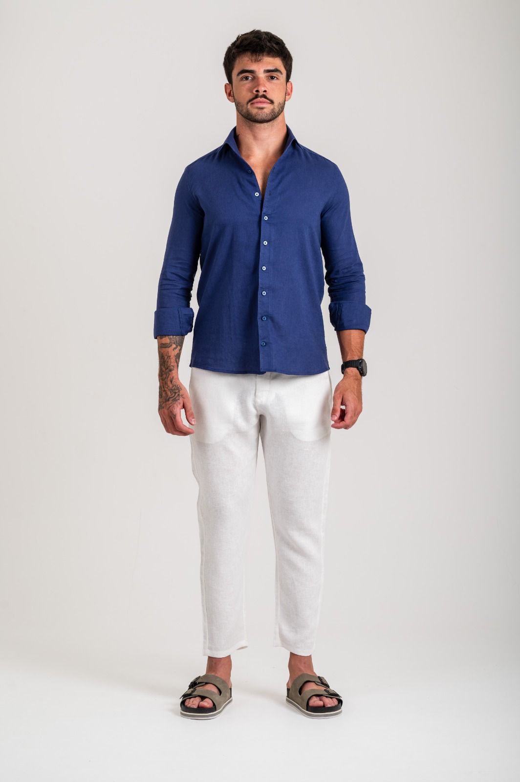 Com cadarço na cintura, bolsos faca e um bolso com zíper invisível, a Santorini é extremamente leve, confortável e com todas as características que o linho proporciona.