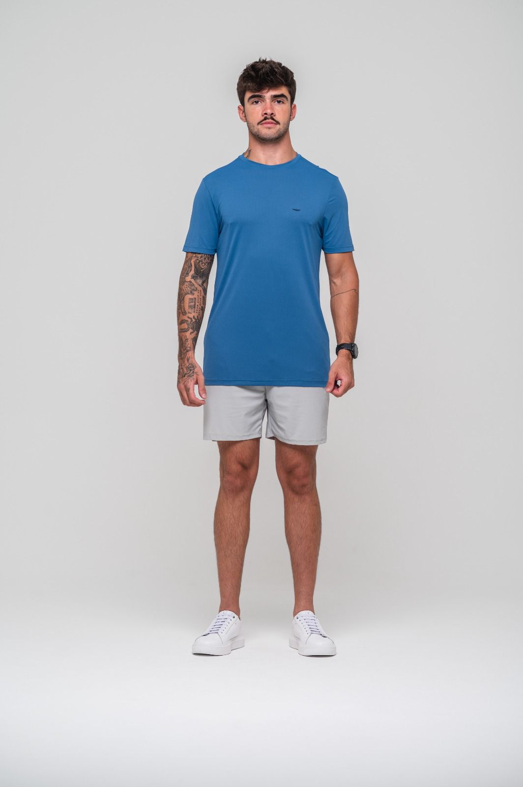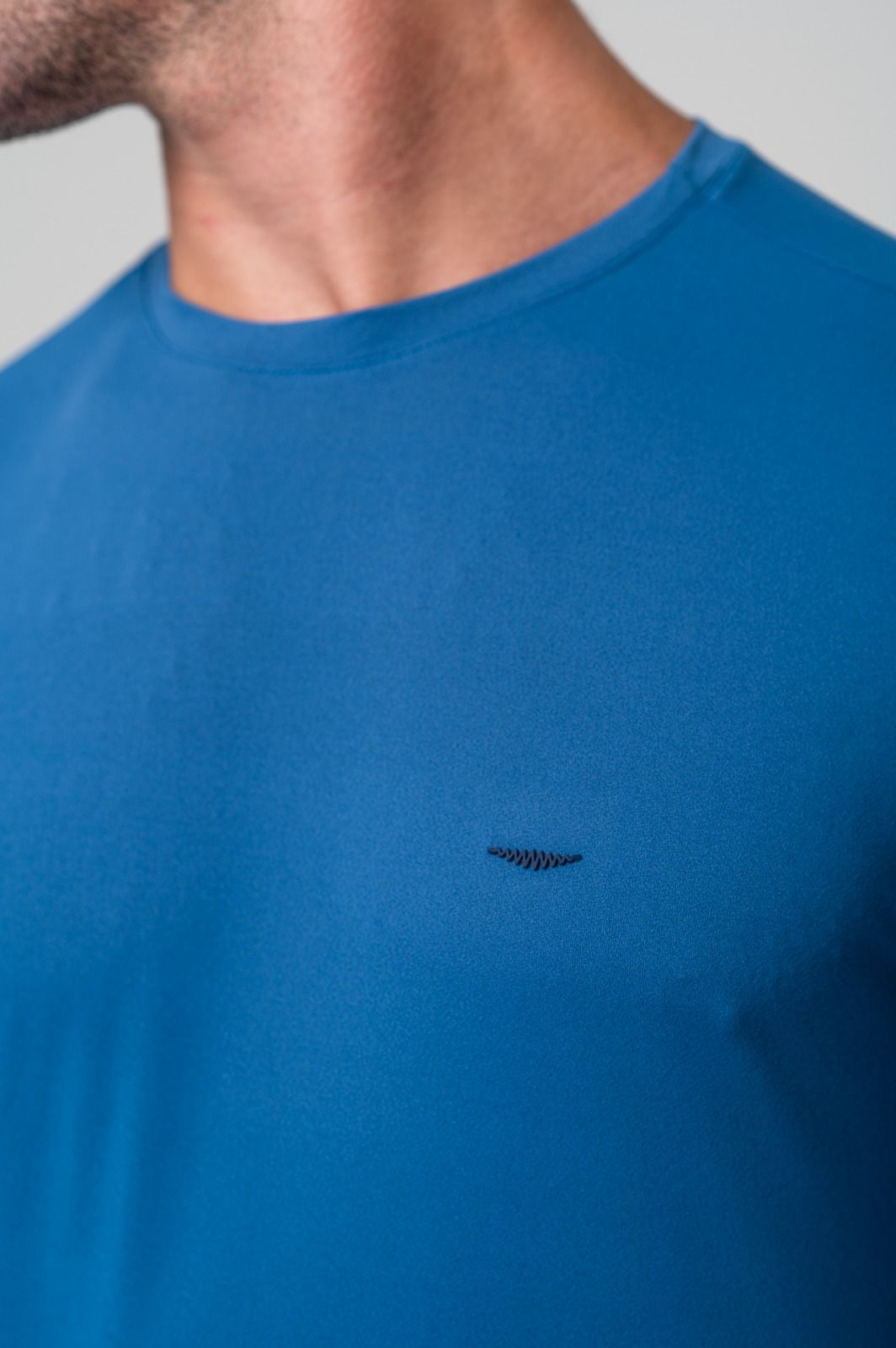 Linha Azione – Camisa Azul Médio com logo Azione Azul Marinho em relevo no peito.