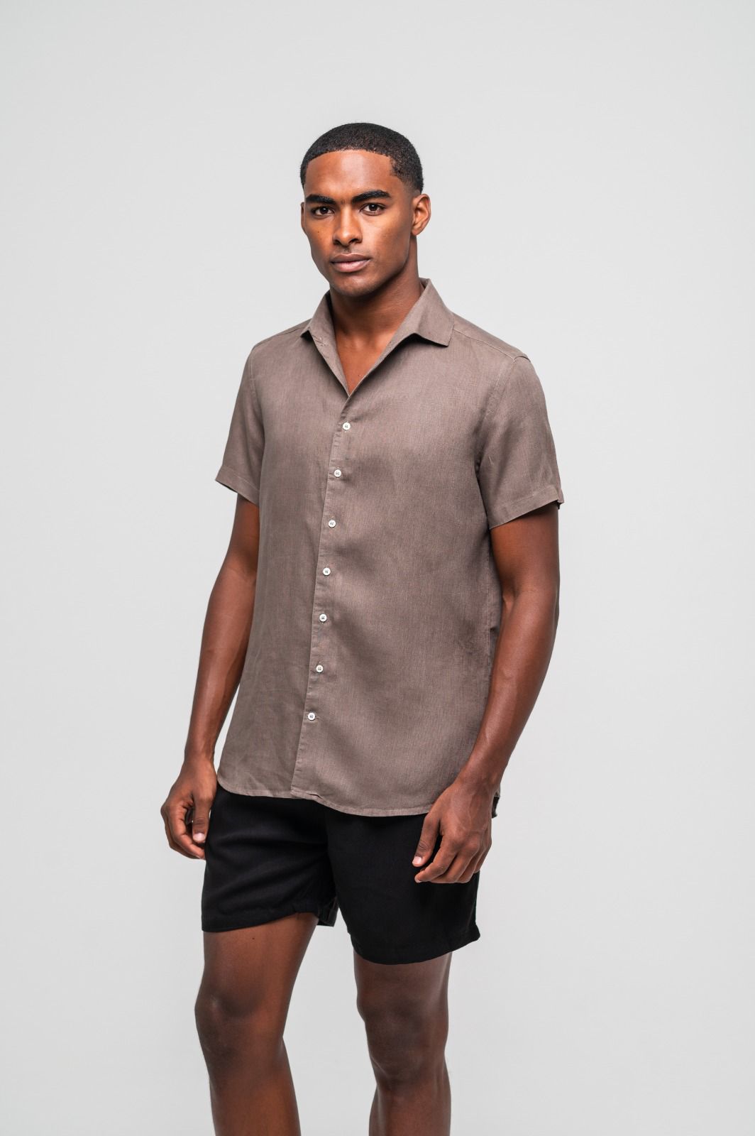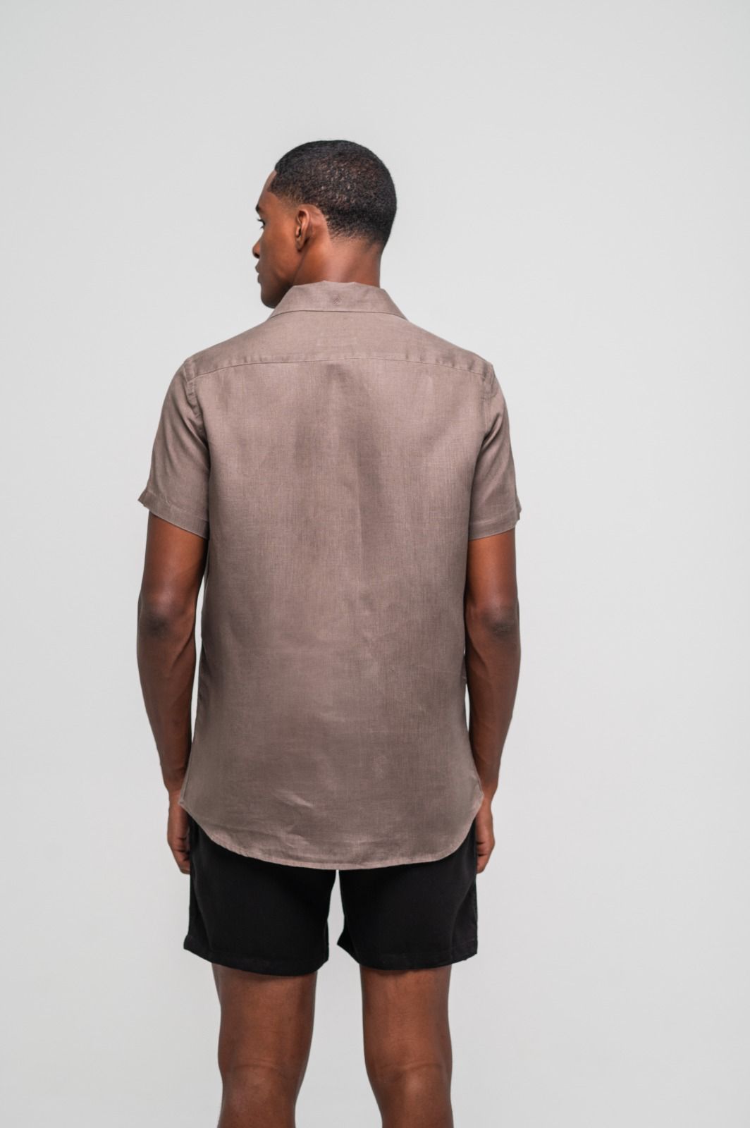 Camisa Capri Linho Irlandês Manga Curta Marrom