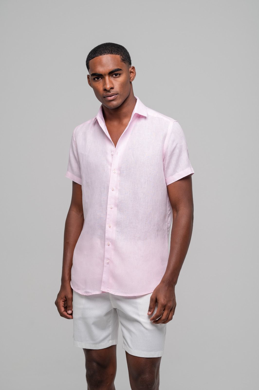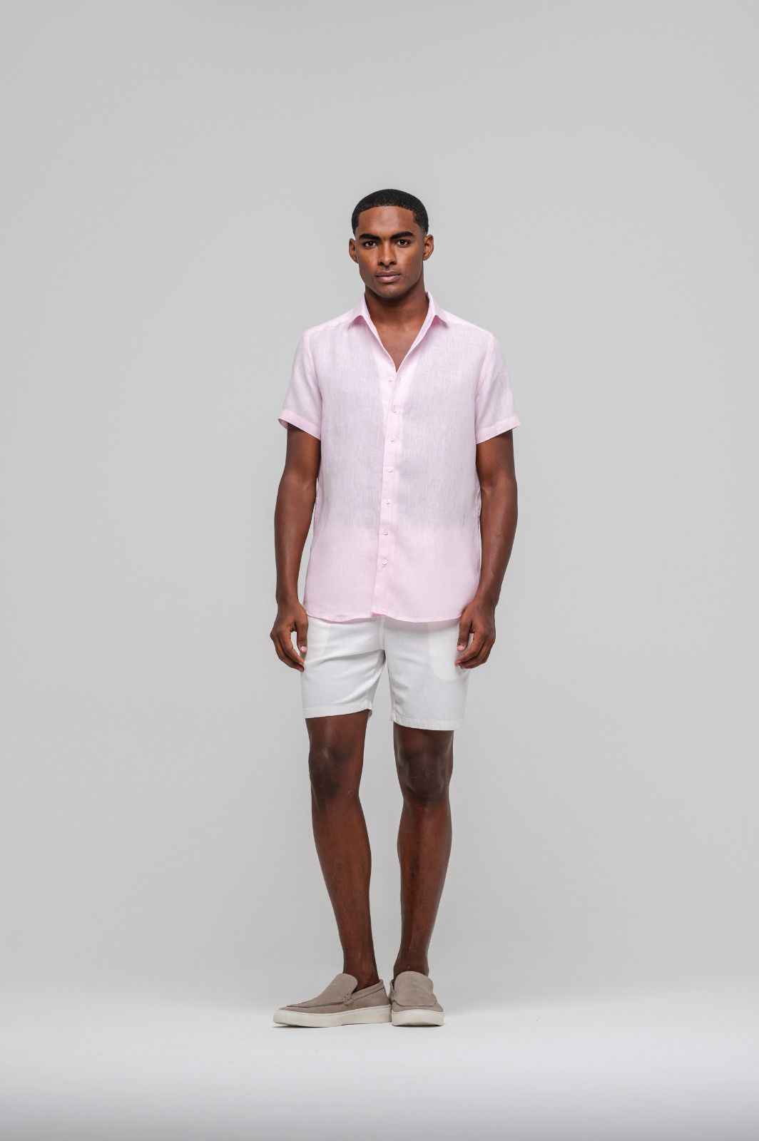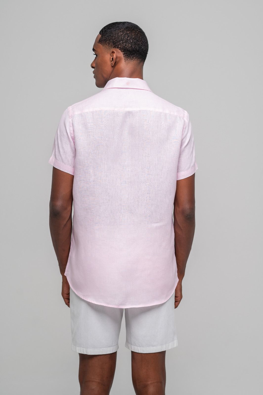 Camisa Capri Linho Irlandês Manga Curta Rosa Claro