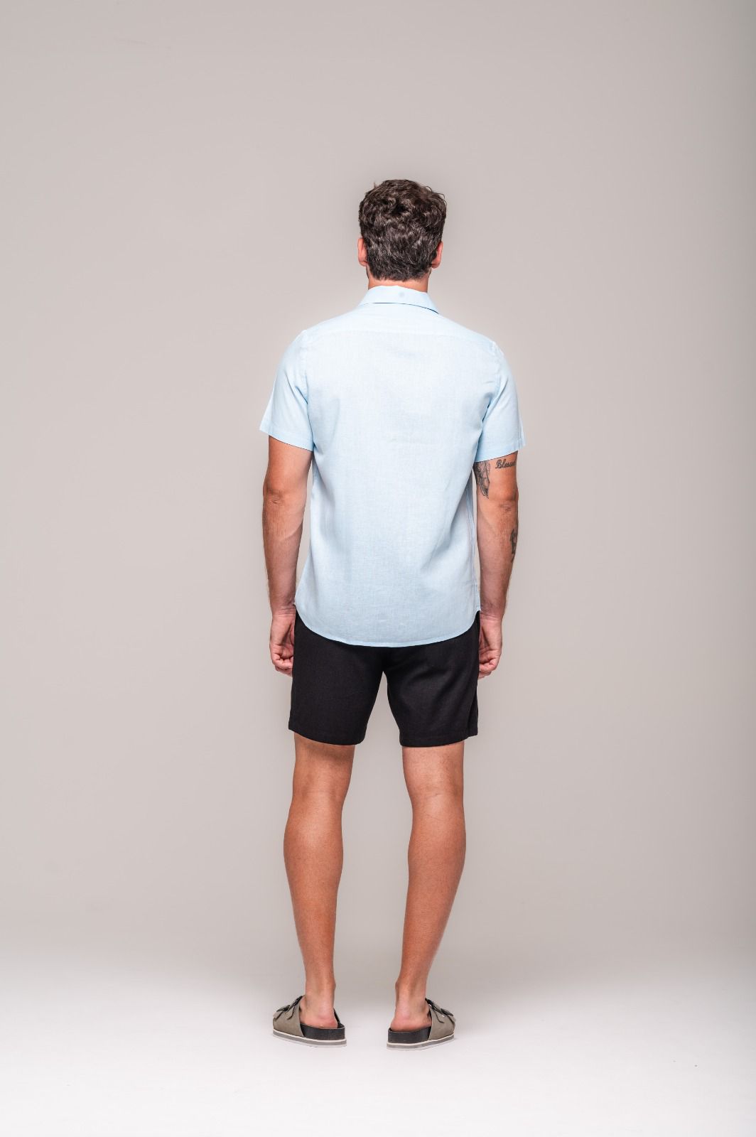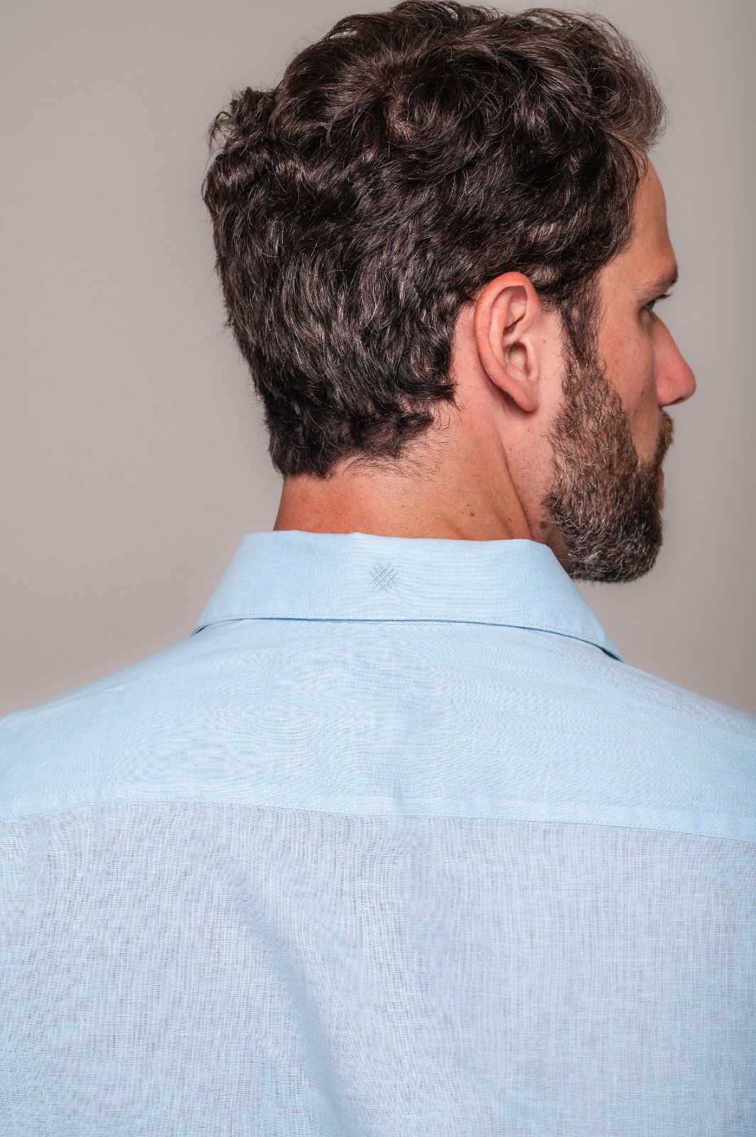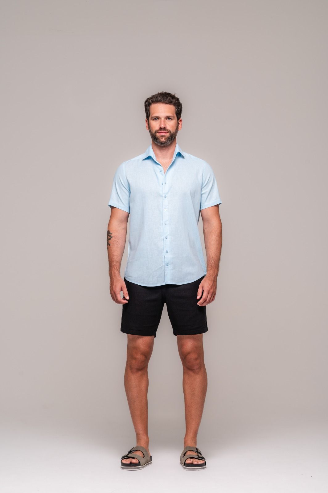 Linha St. Tropez – Camisa de Linho Azul Claro Manga Curta