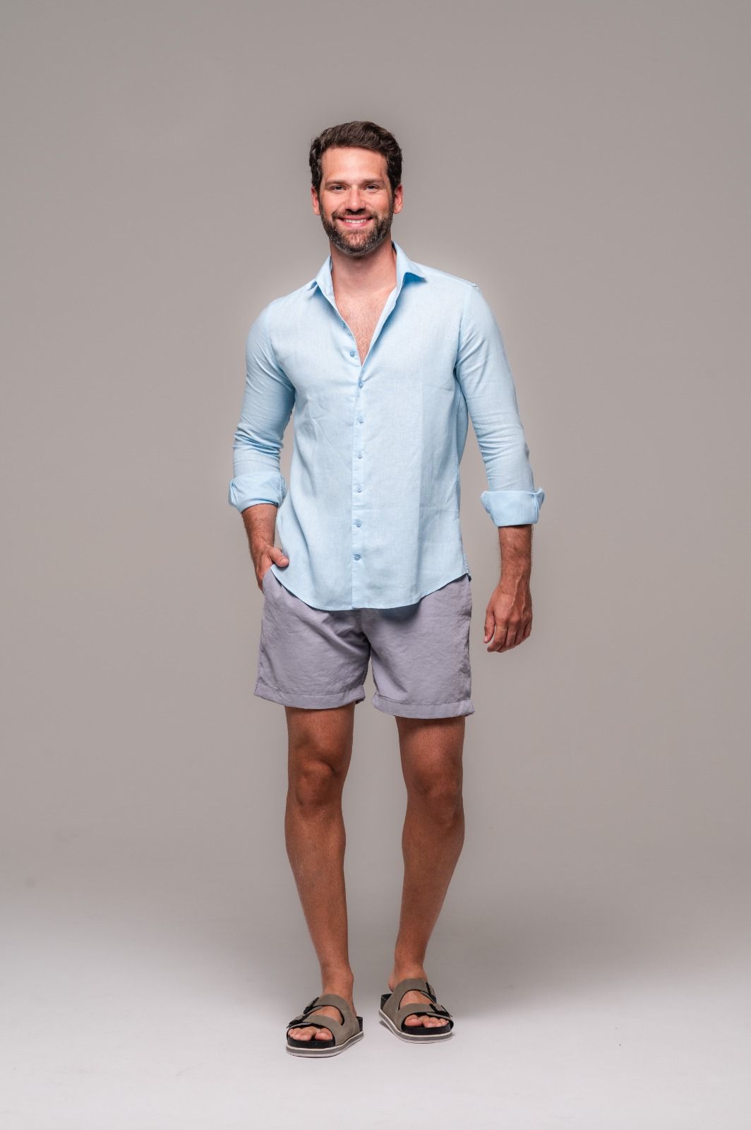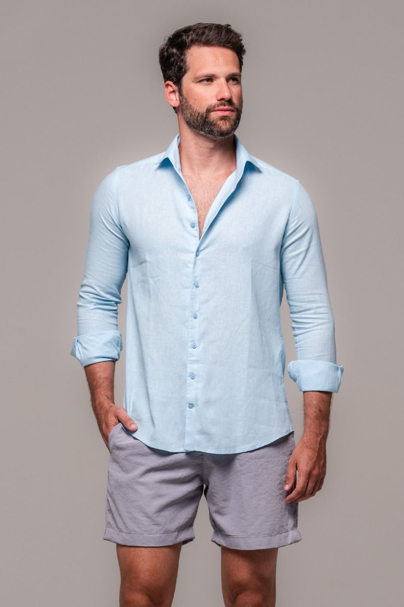 Linha St. Tropez – Camisa de Linho Azul Claro Manga Longa