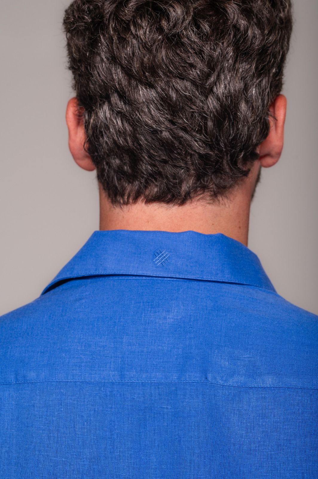 Linha St. Tropez – Camisa de Linho Azul Royal Manga Curta