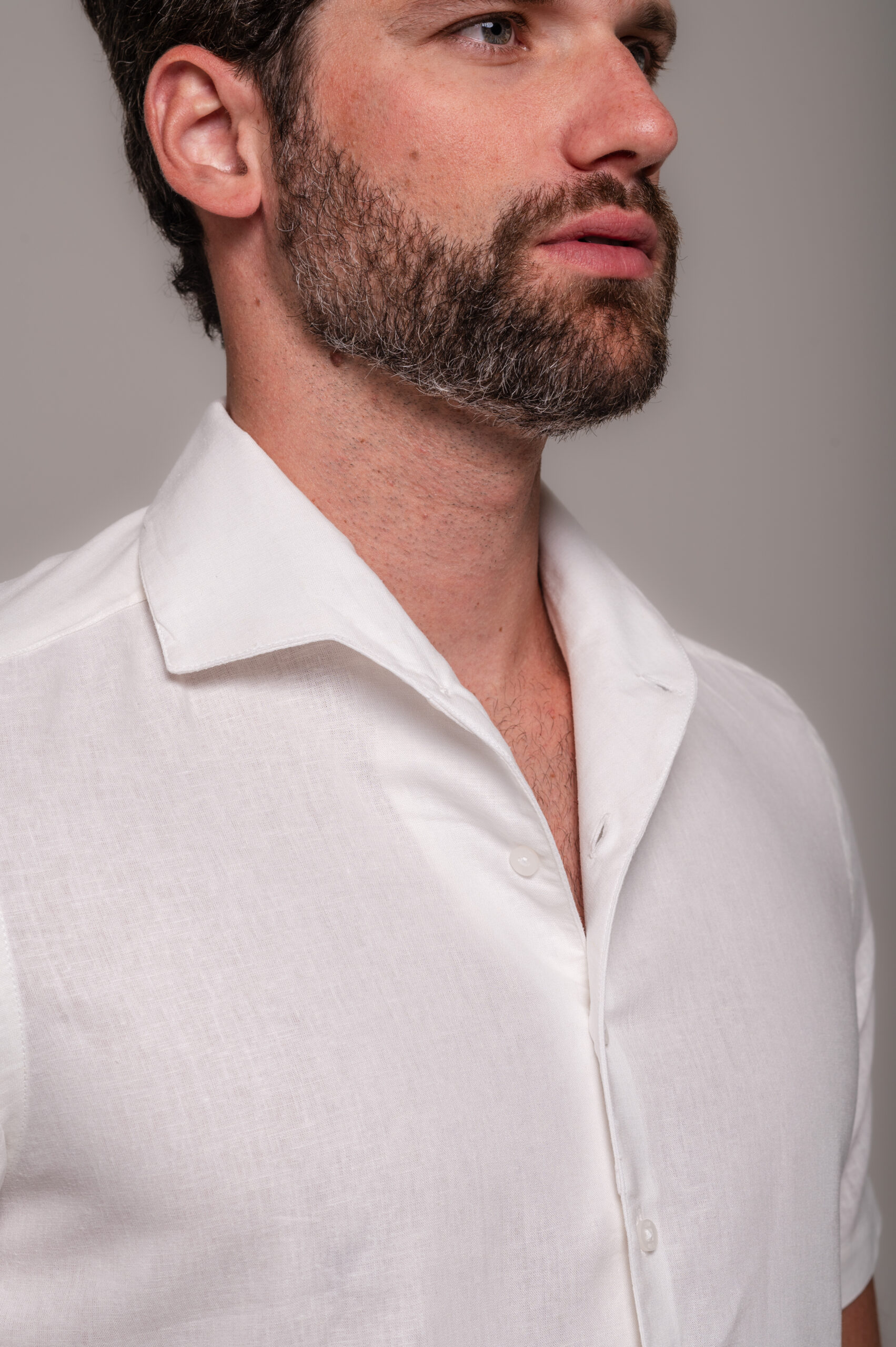 Linha St. Tropez – Camisa de Linho Off White Manga Curta