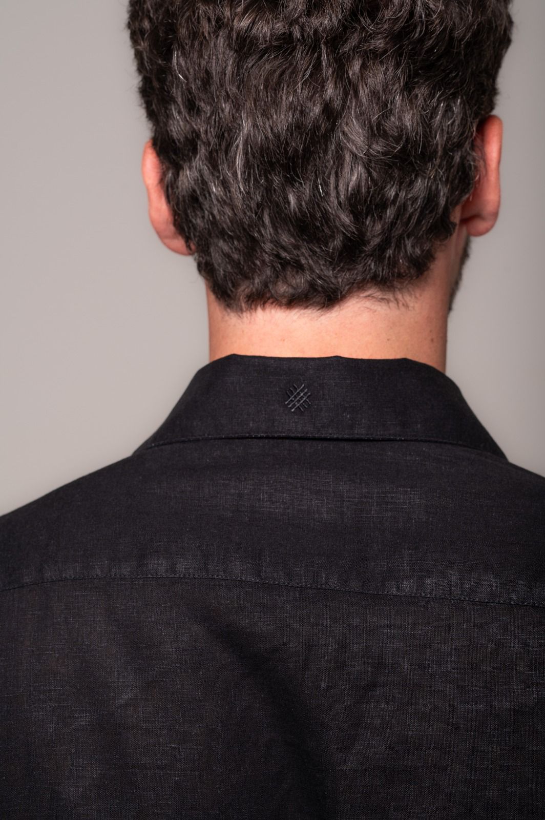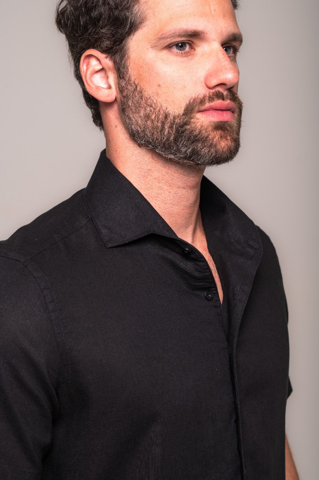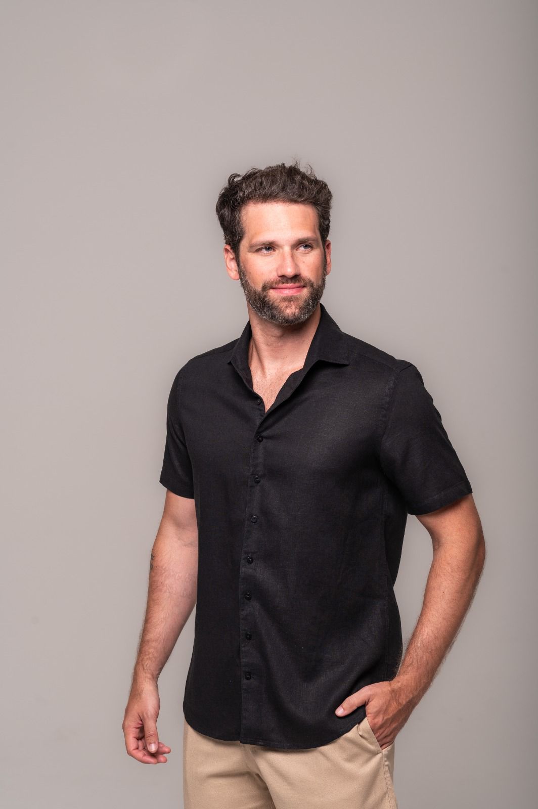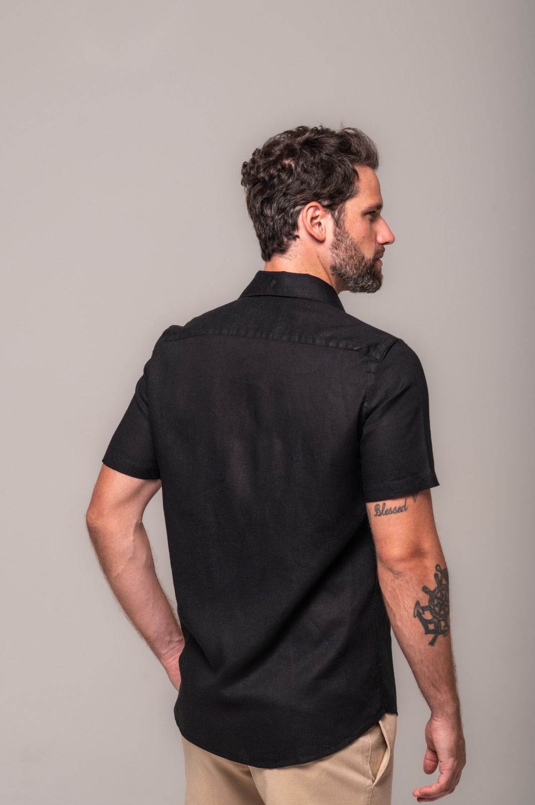 Linha St. Tropez – Camisa de Linho Preta Manga Curta