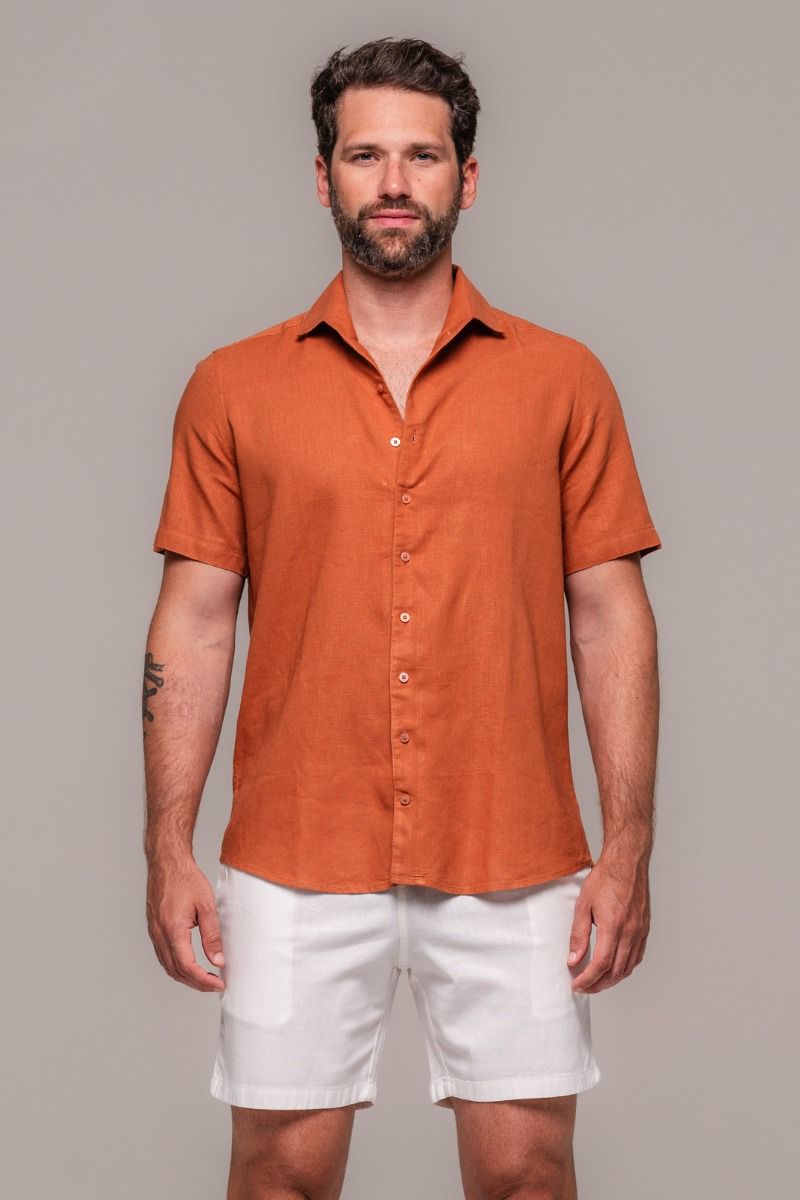 Linha St. Tropez – Camisa de Linho Trufa Manga Curta