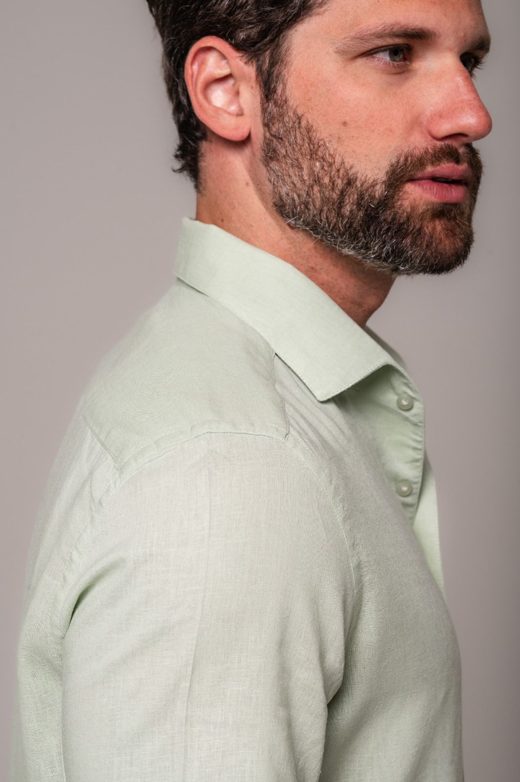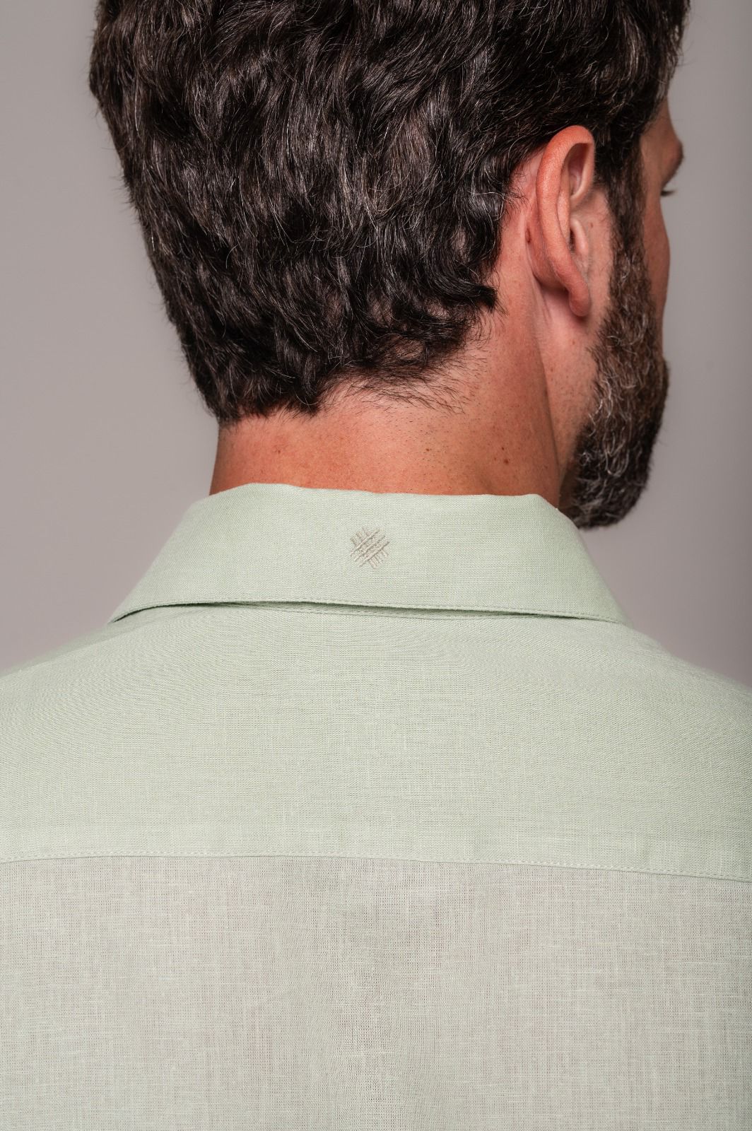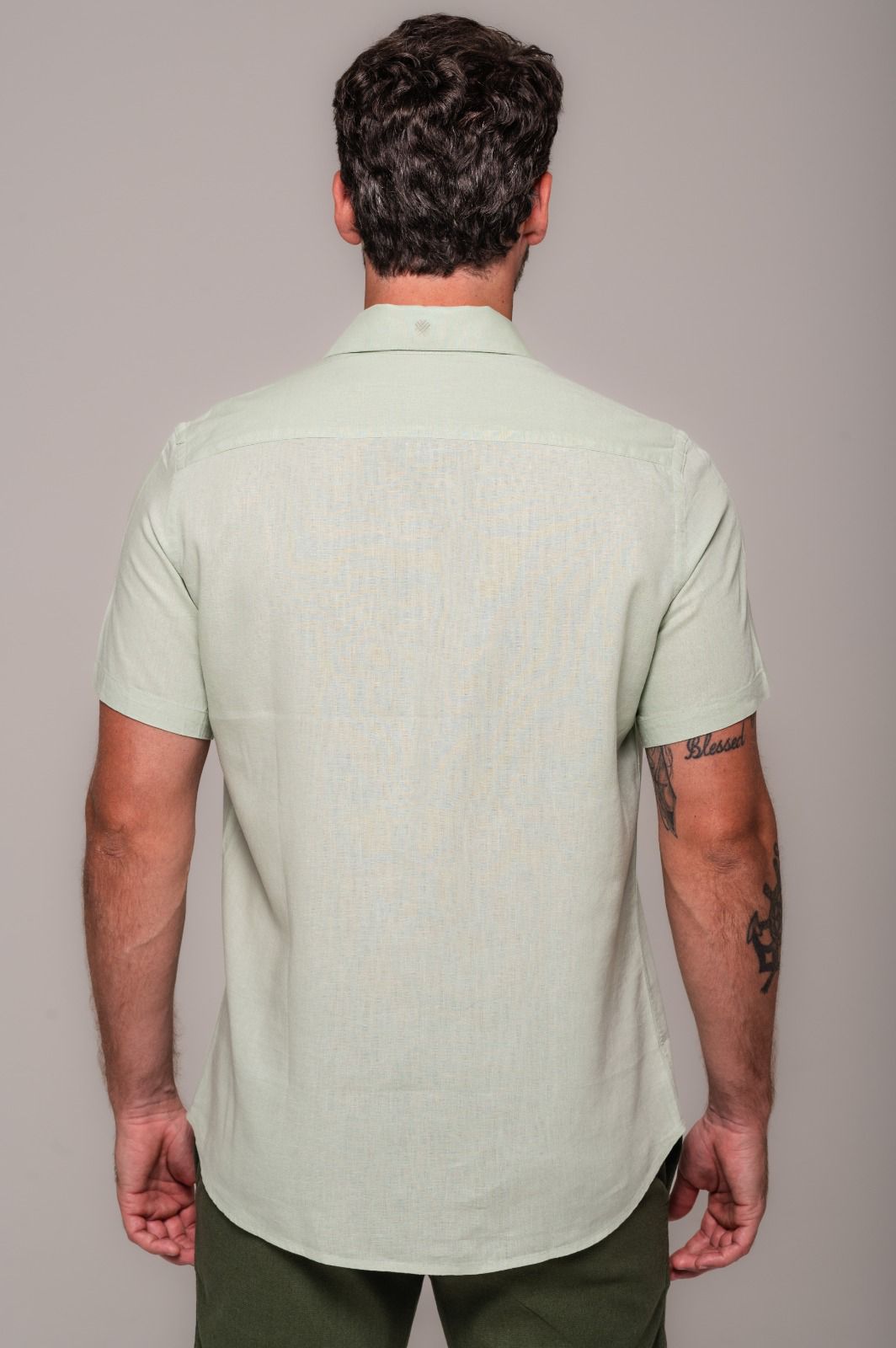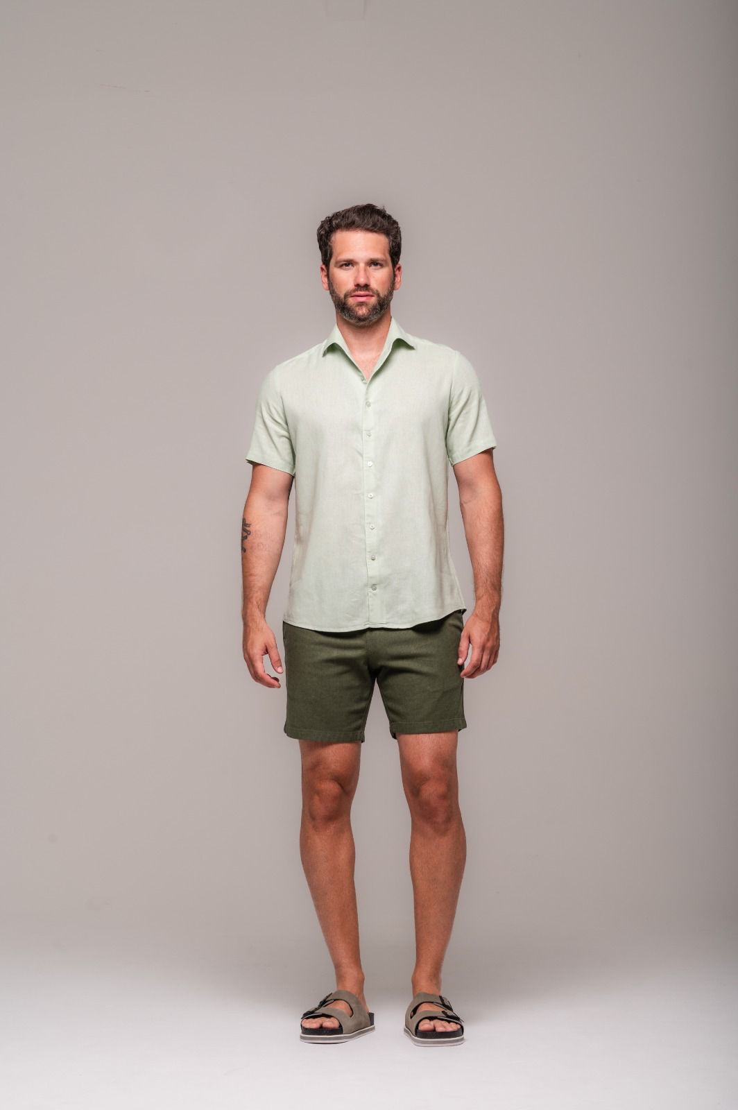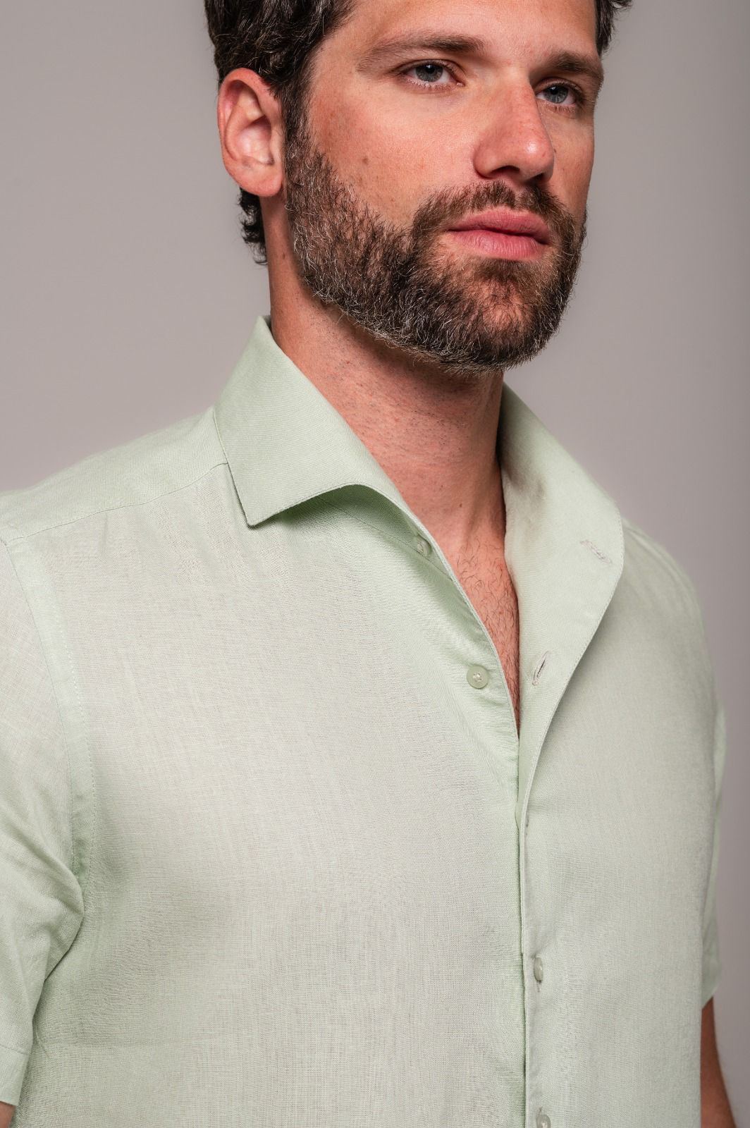 Linha St. Tropez – Camisa de Linho Verde Claro Manga Curta