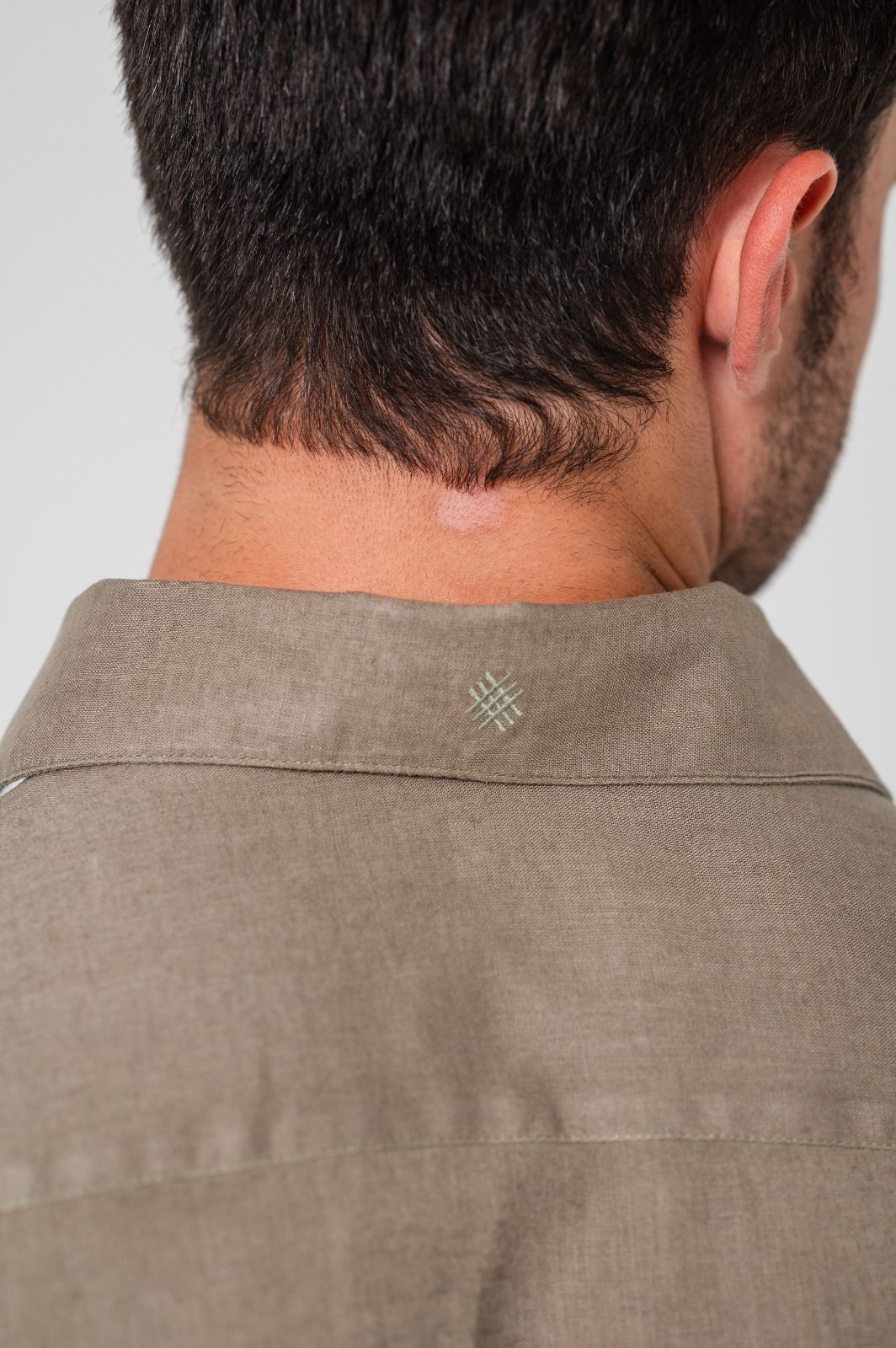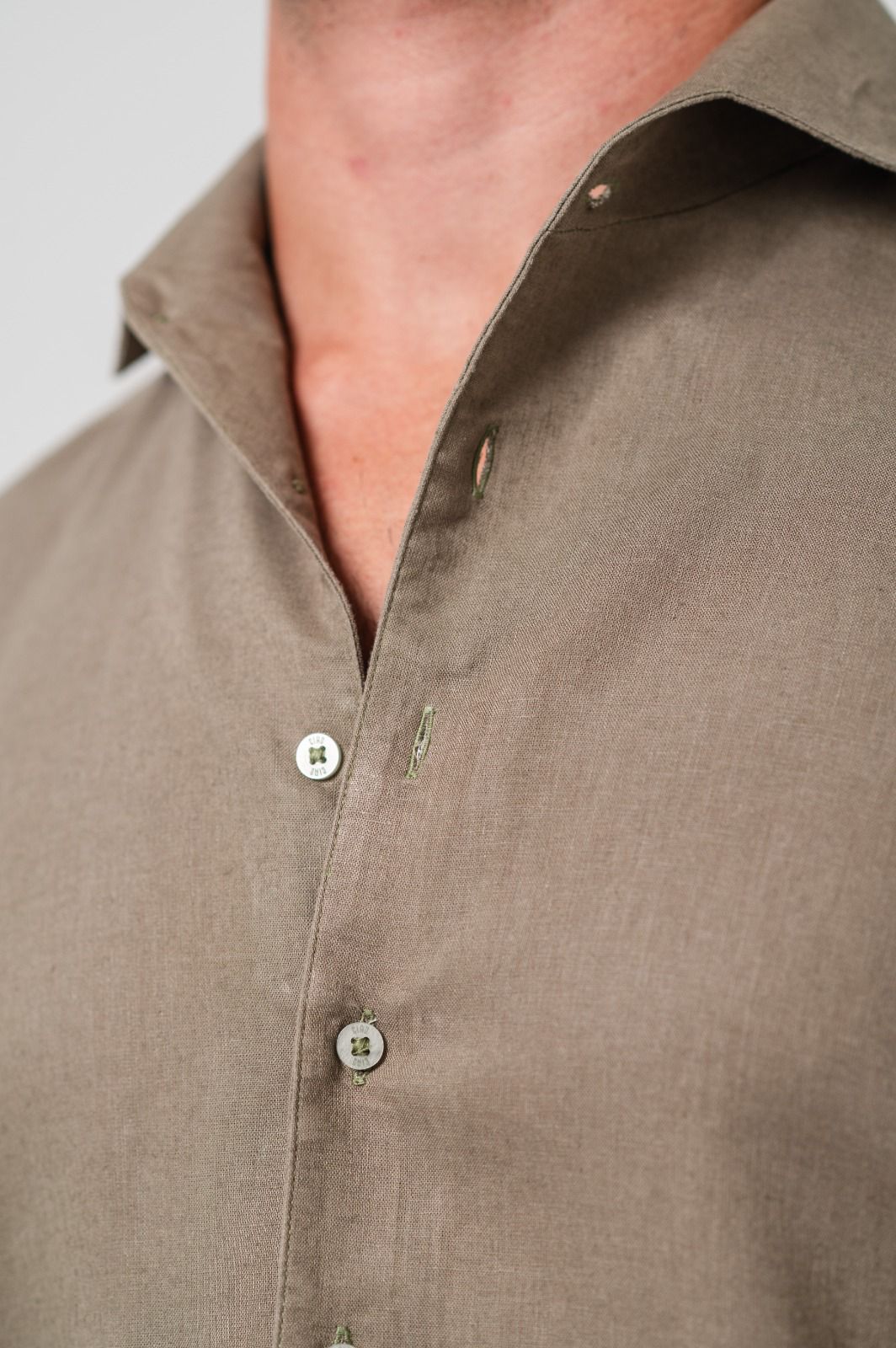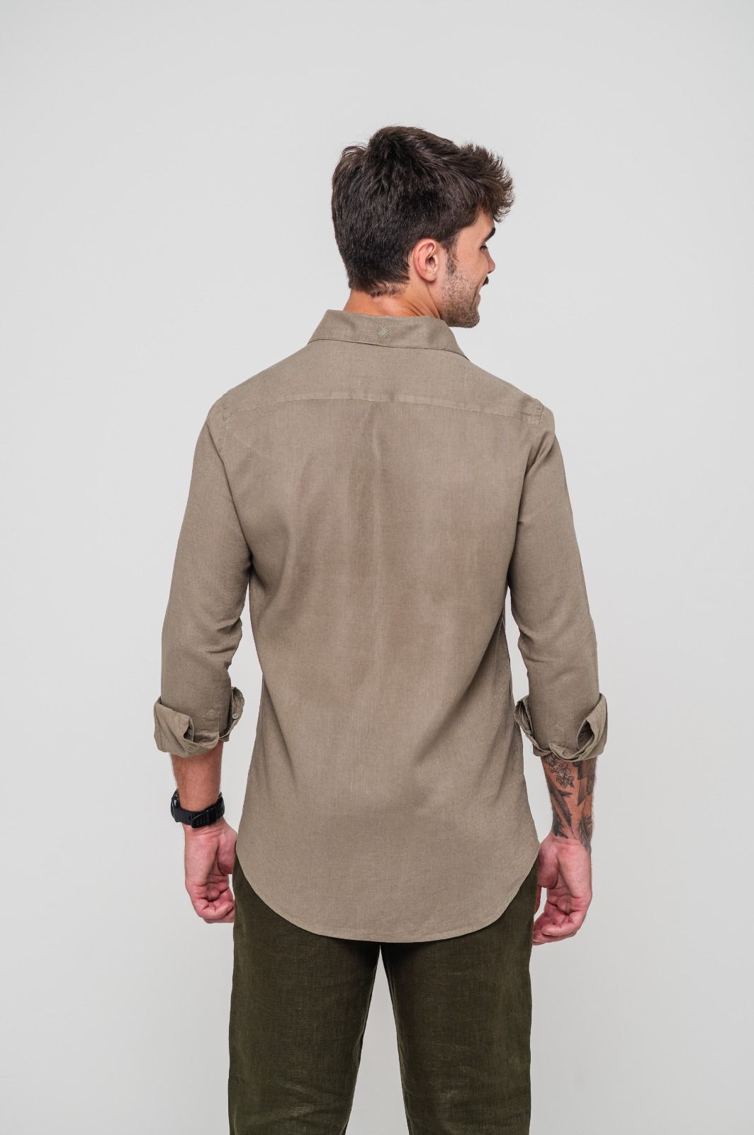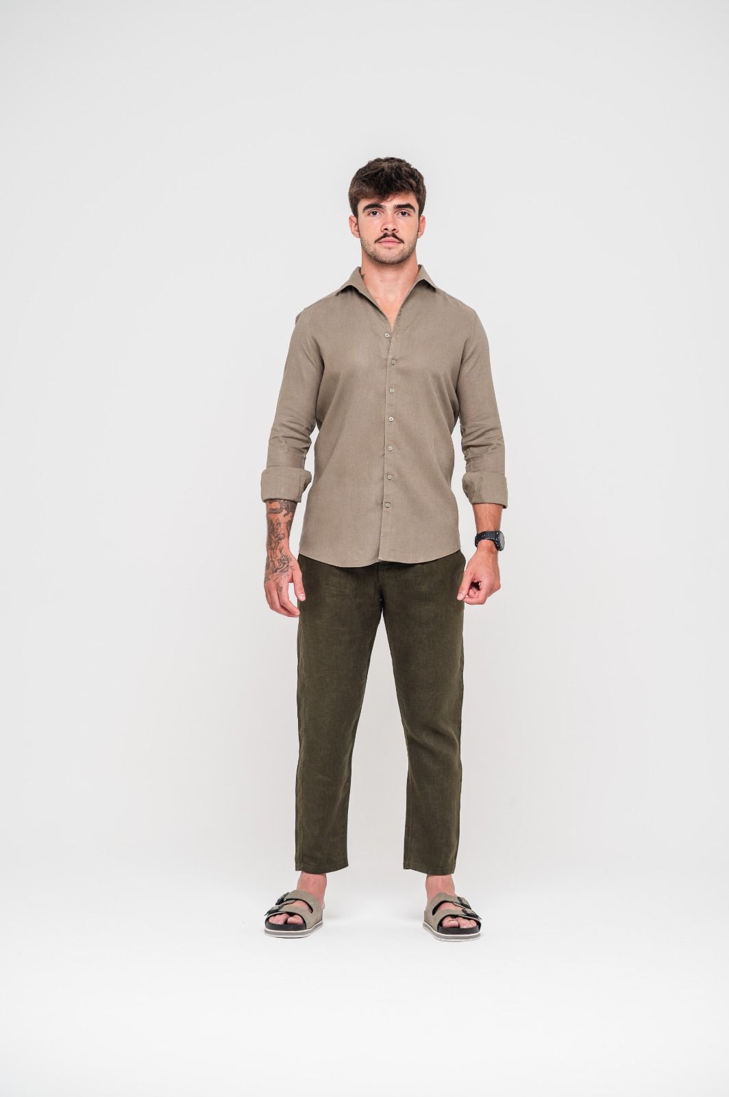 Linha St. Tropez – Camisa de Linho Verde Oliva Manga Longa