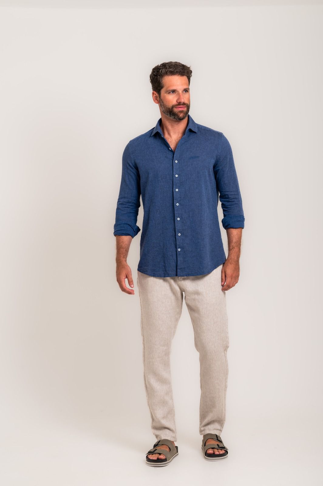 A Camisa Positano é a escolha ideal para quem busca elegância descomplicada para o dia a dia. Confeccionada em uma combinação de linho e algodão, oferece leveza, respirabilidade e conforto térmico, sendo perfeita para os dias mais quentes.