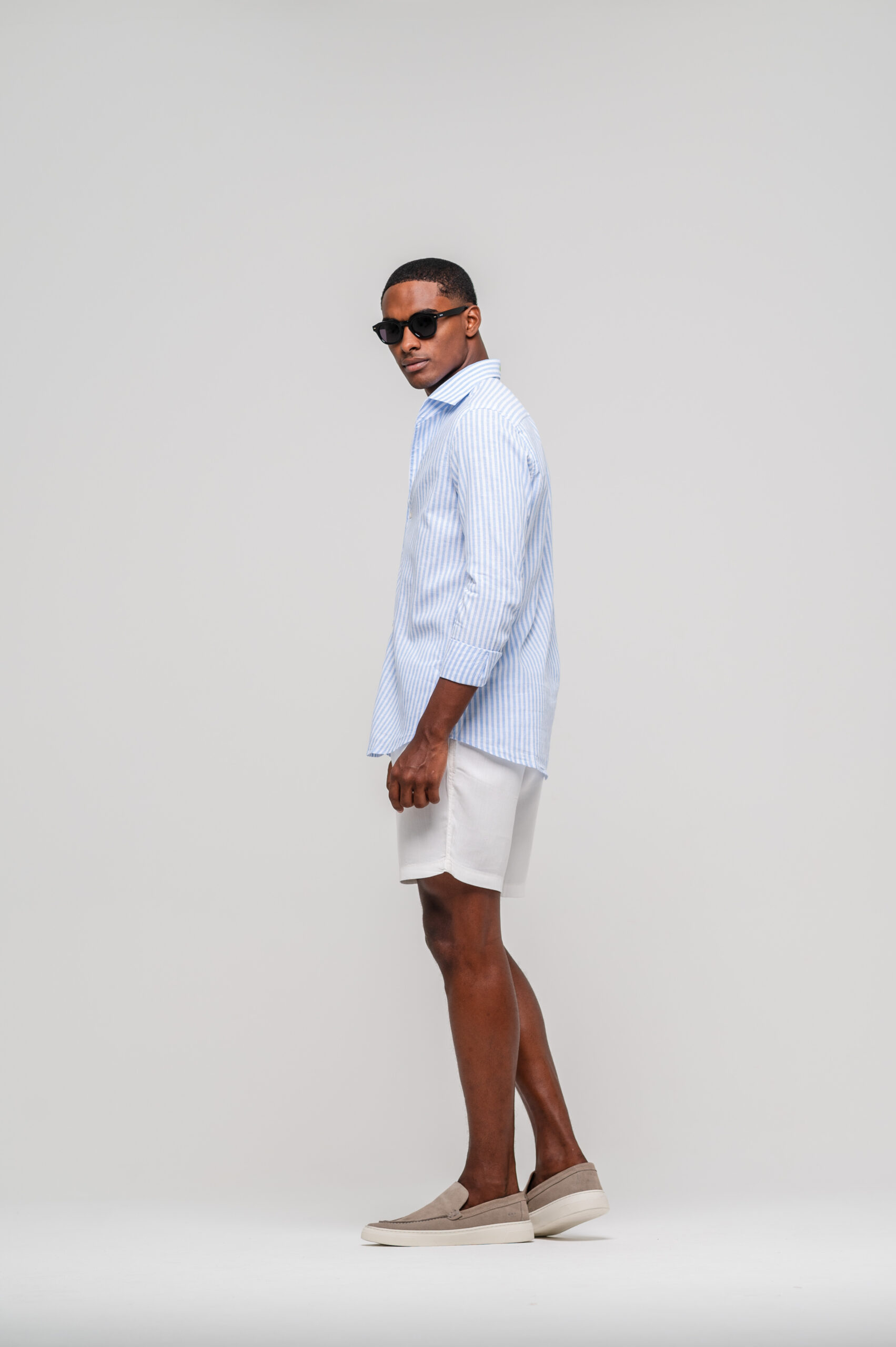 A Camisa Positano é a escolha ideal para quem busca elegância descomplicada para o dia a dia. Confeccionada em uma combinação de linho e algodão, oferece leveza, respirabilidade e conforto térmico, sendo perfeita para os dias mais quentes.