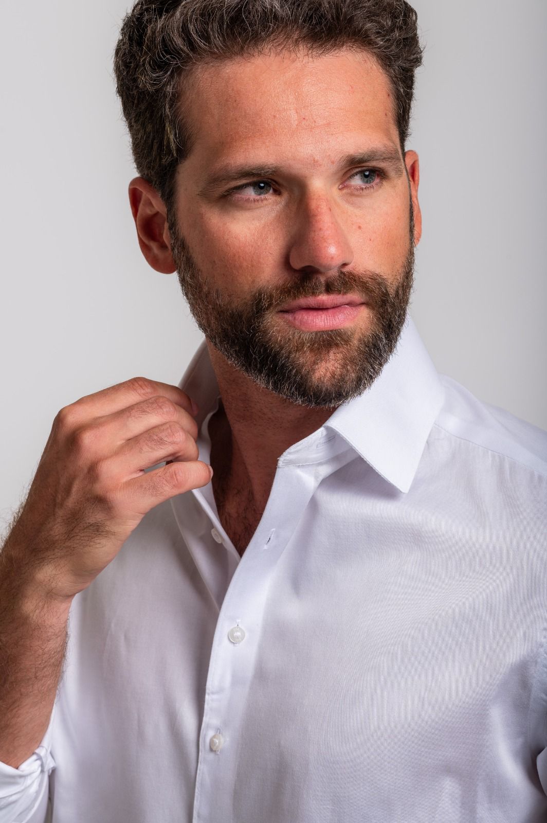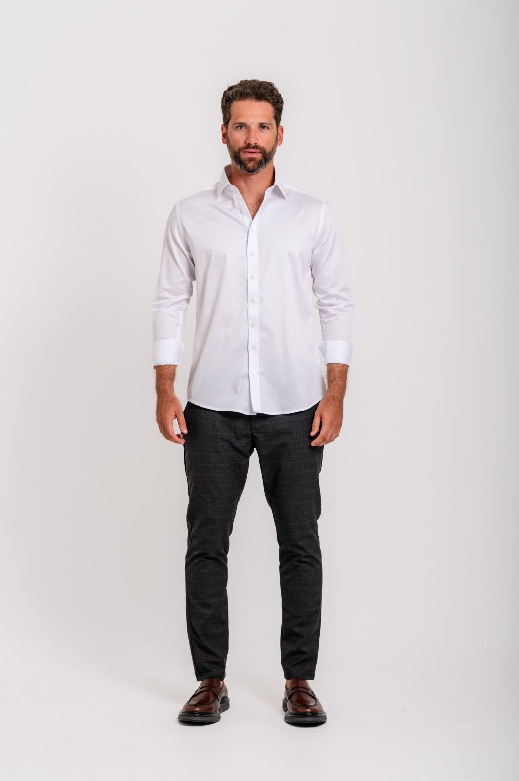 Camisa social de estética italiana, desenvolvida para um caimento impecável e elegante no corpo. Confeccionada em tecido 98% algodão com 2% elastano, oferece conforto, leve flexibilidade e liberdade de movimento no dia a dia.