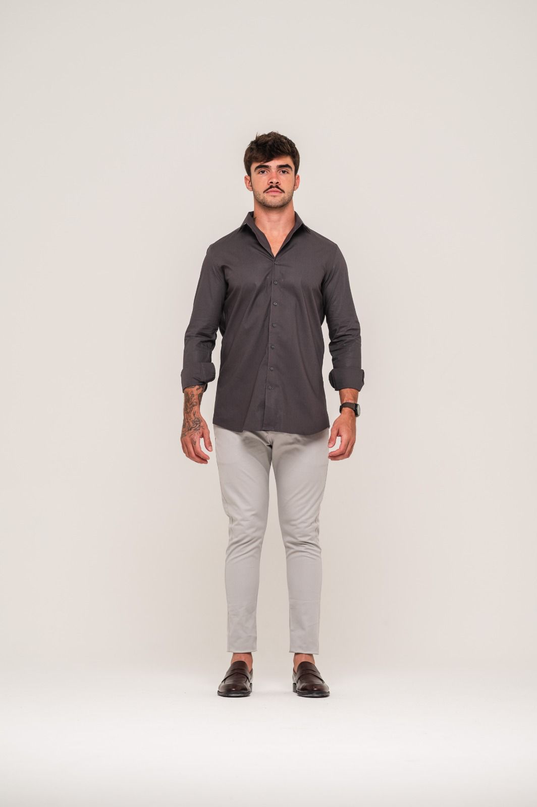 Linha Vittorio – Camisa Social Manga Longa Chumbo