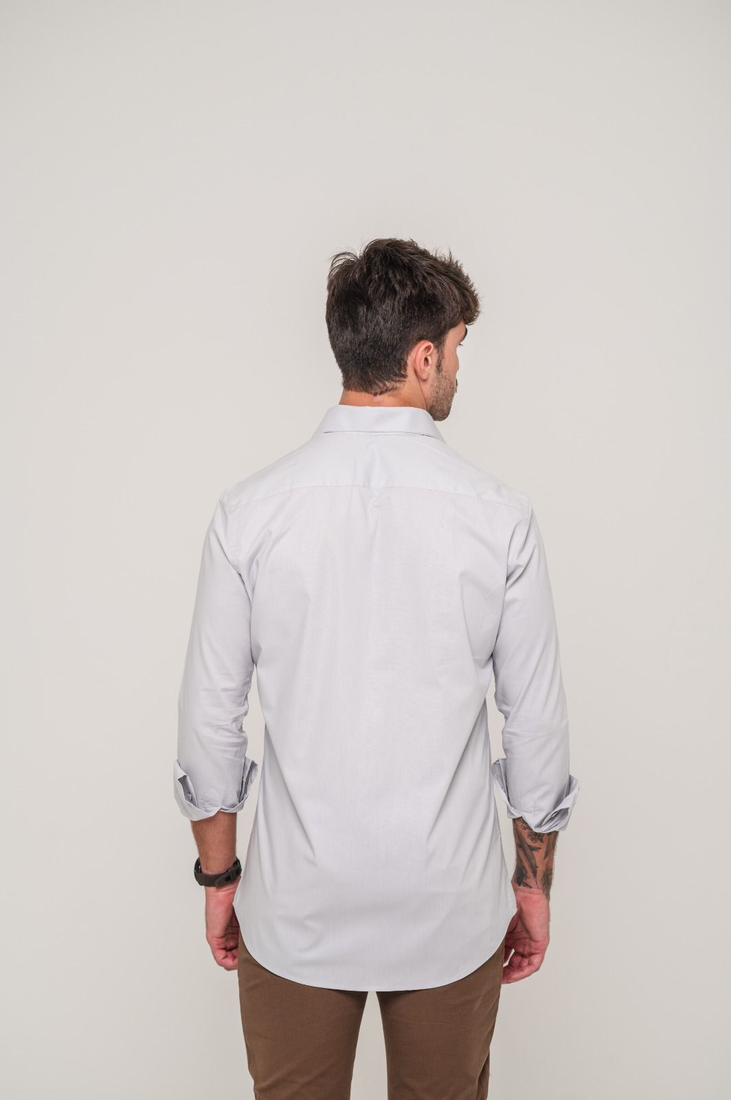 Linha Vittorio – Camisa Social Manga Longa Cinza Claro