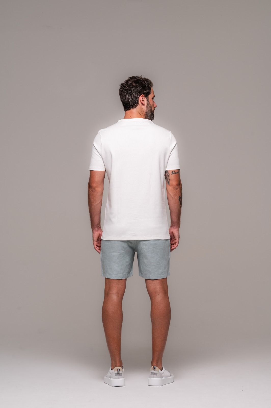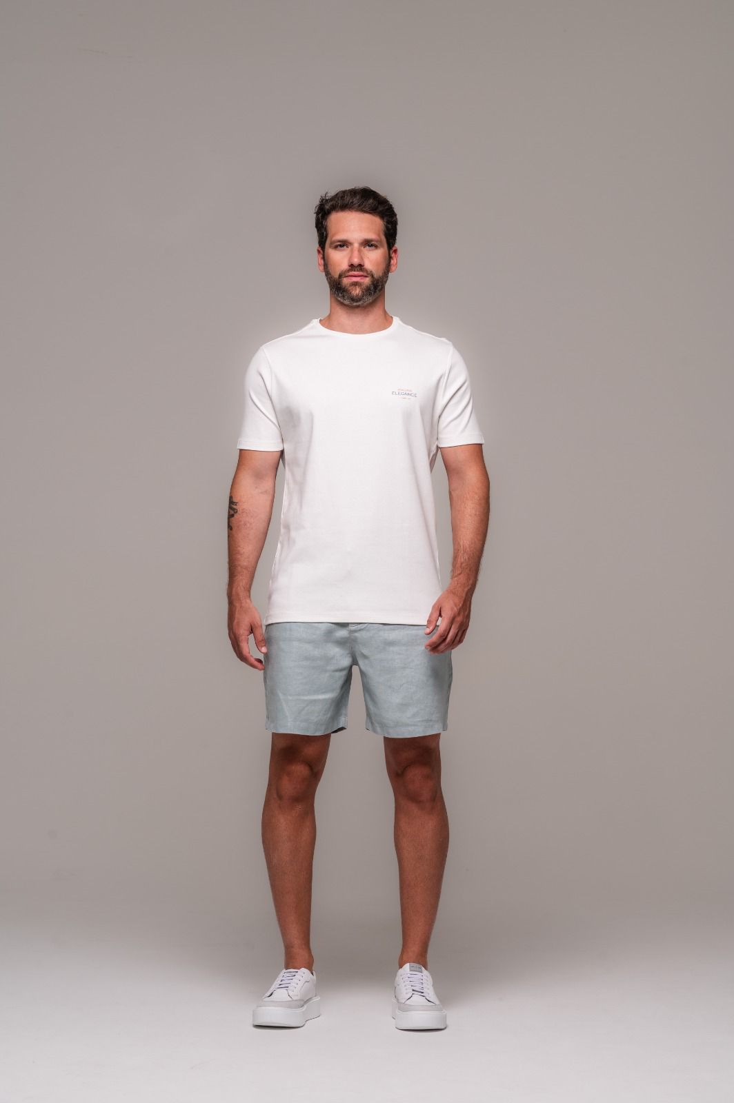 Italian Elegance –Um dos slogans mais icônicos da CIAO, agora estampado em nossas t-shirts para reforçar ainda mais a narrativa que guia a marca: a elegância italiana em cada detalhe. Disponível em azul e off white, com estampa frontal .minimalista