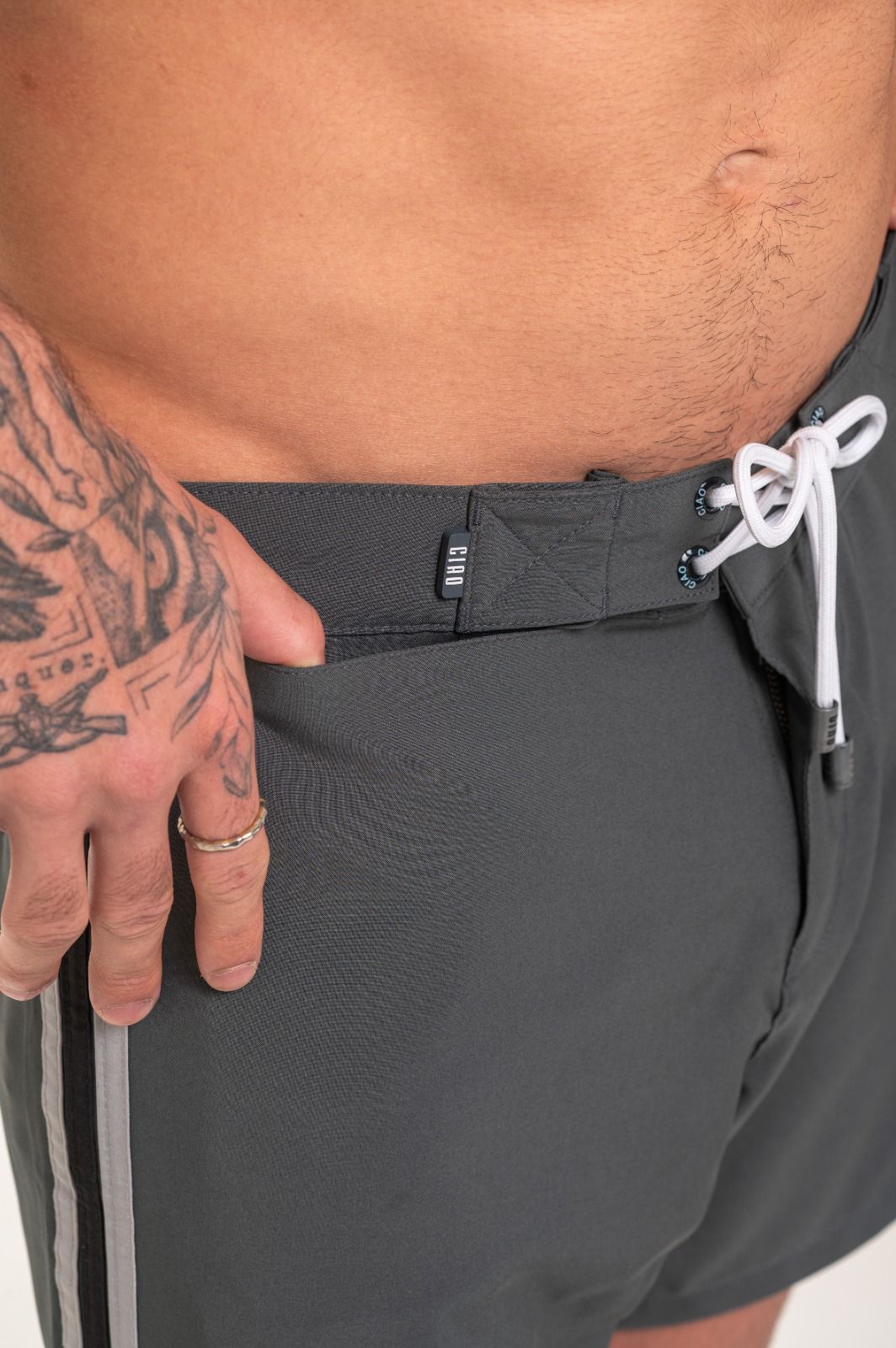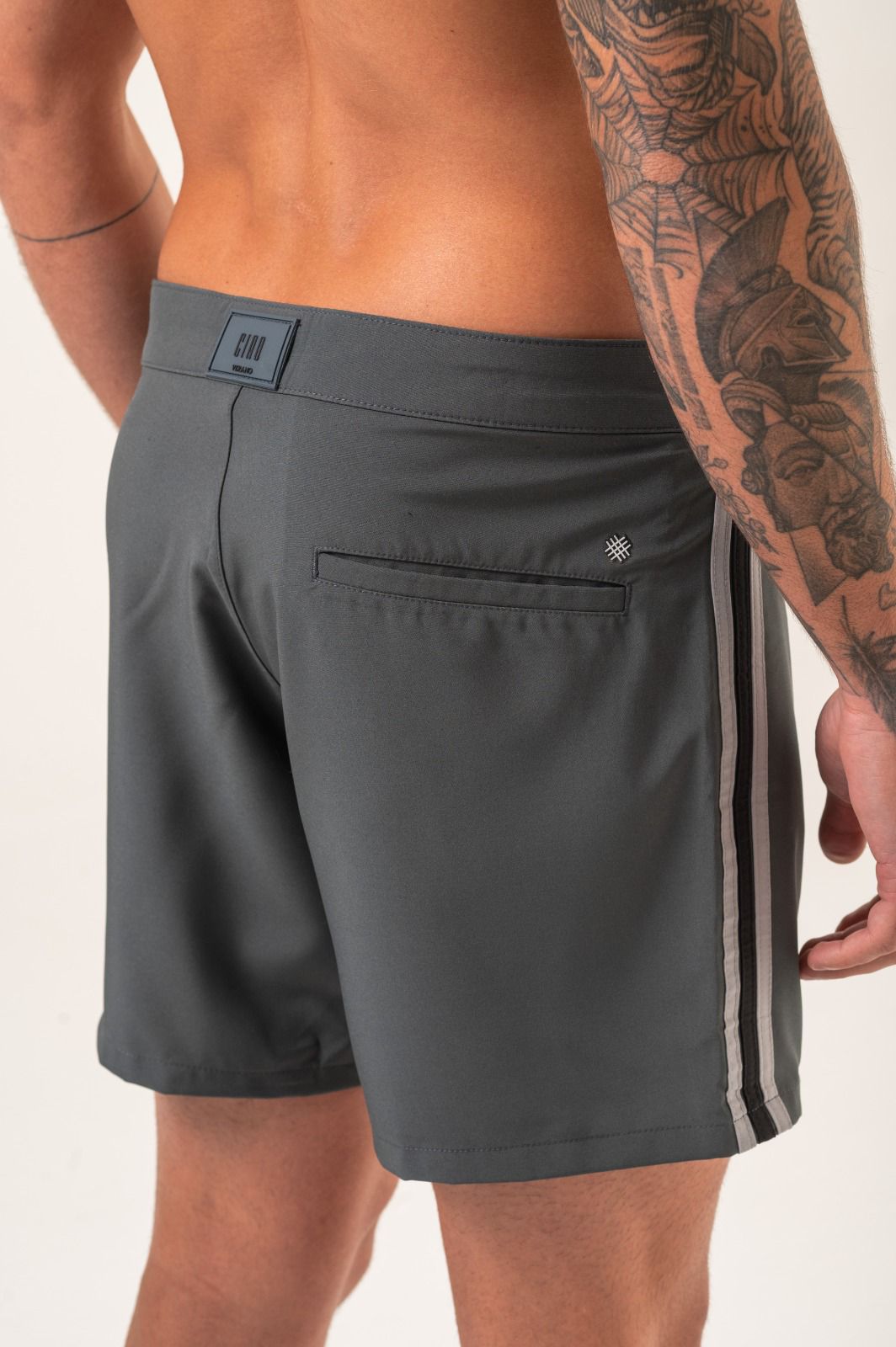 O Short Malibu une conforto, estilo e personalidade na medida certa. Em tom chumbo, ele ganha destaque com as listras laterais em cinza, preto e cinza que trazem um toque moderno e esportivo à peça.