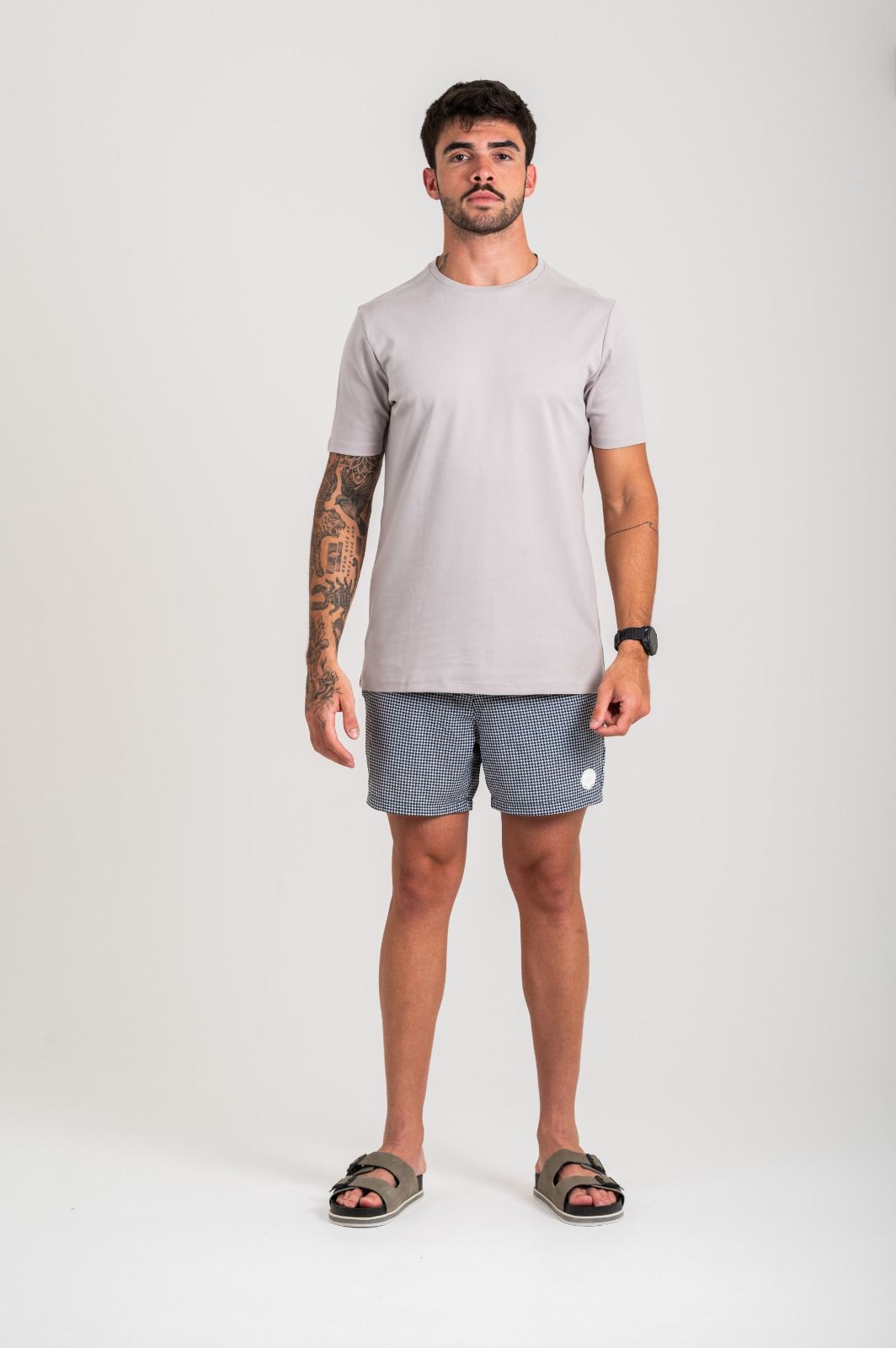 Produzido com uma mescla premium de 92% poliéster e 8% elastano, o tecido entrega toque macio, caimento impecável e conforto absoluto, mantendo leveza e resistência para acompanhar a rotina sofisticada do homem moderno. A tecnologia de secagem rápida reforça sua funcionalidade sem abrir mão da elegância.