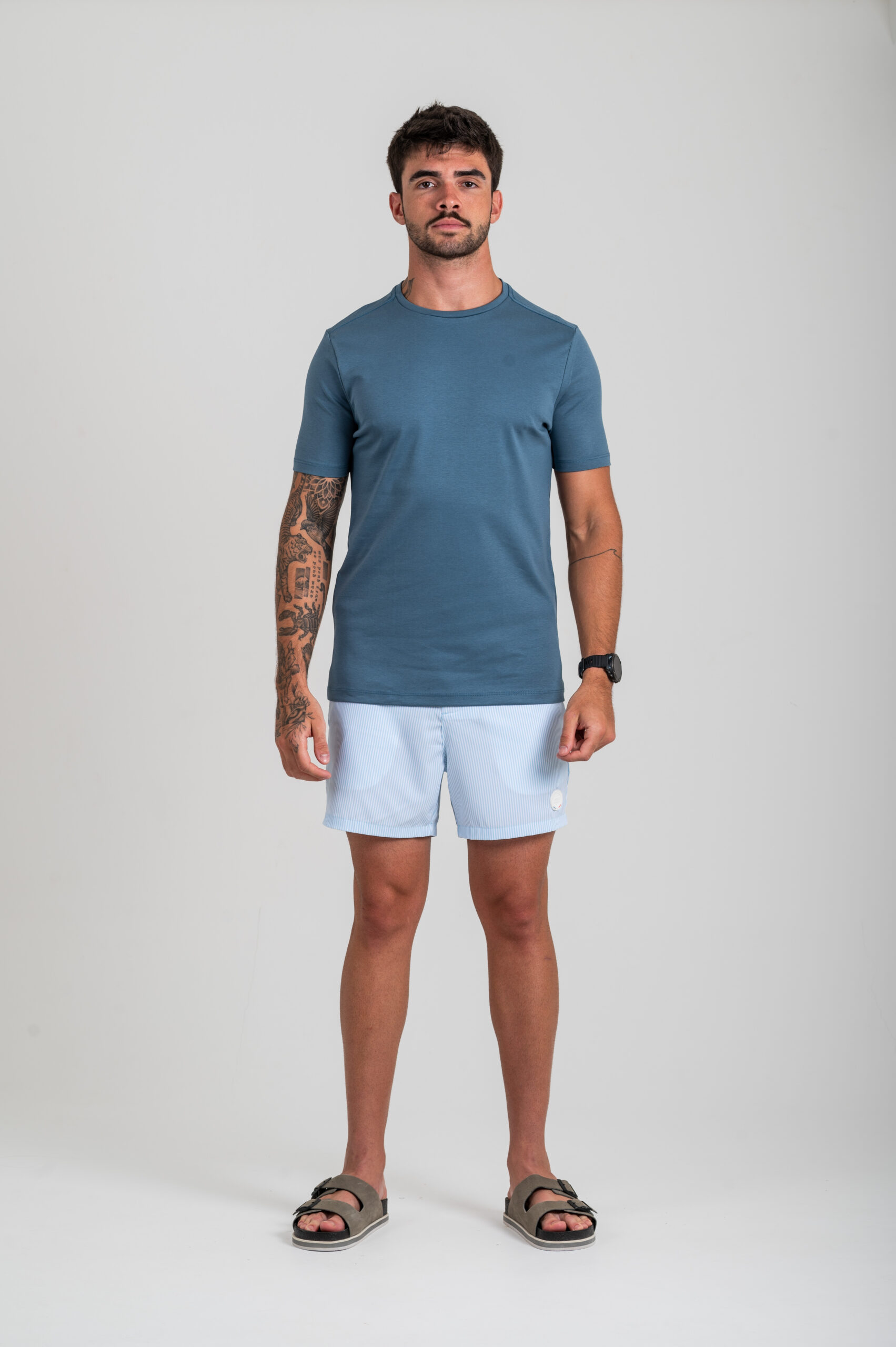 Produzido com uma mescla premium de 92% poliéster e 8% elastano, o tecido entrega toque macio, caimento impecável e conforto absoluto, mantendo leveza e resistência para acompanhar a rotina sofisticada do homem moderno. A tecnologia de secagem rápida reforça sua funcionalidade sem abrir mão da elegância.